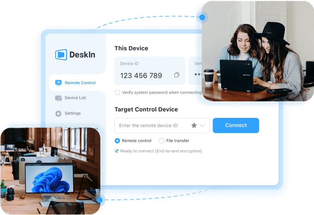 DeskIn allows full control between devices regardless of operating systems. Whether accessing a desktop from a phone, a laptop from a tablet, or managing multiple hardware remotely, it supports both attended and unattended usage with consistent stability.