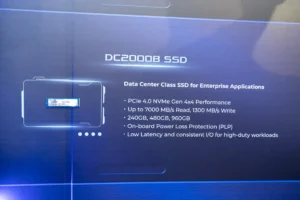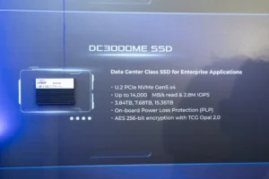 - DC3000ME SSD: PCIe 5.0 U.2, 14,000MB/s read, 2.8M IOPS, up to 15.36TB