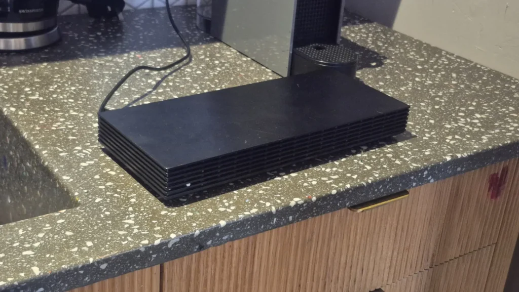 But the coolest part might be the wireless streaming hub. You connect all your devices to that box, and it sends everything to the TV with low latency. That means your wall stays clean, cable-free, and genuinely gallery-like.