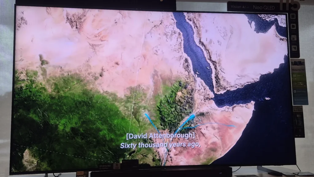 We kicked things off in the living room setup, where the Neo QLED QN90F took center stage. At 115 inches, it’s basically a home cinema on its own, and Samsung lined up movies, dramas, and documentaries so we could actually see the differences across genres.