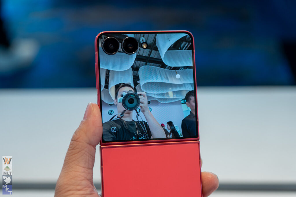 - Galaxy Z Flip7: The Selfie Powerhouse: The Z Flip7 steps up its selfie game with a 50MP wide-angle lens and real-time preview directly on the FlexWindow. FlexCam mode, paired with new features like the Zoom Slider and Real-Time Filters, helps you compose perfect hands-free shots, from solo travel snaps to wide group selfies. Even everyday moments benefit from Portrait Studio and Enhanced Nightography, ensuring your memories are captured beautifully.