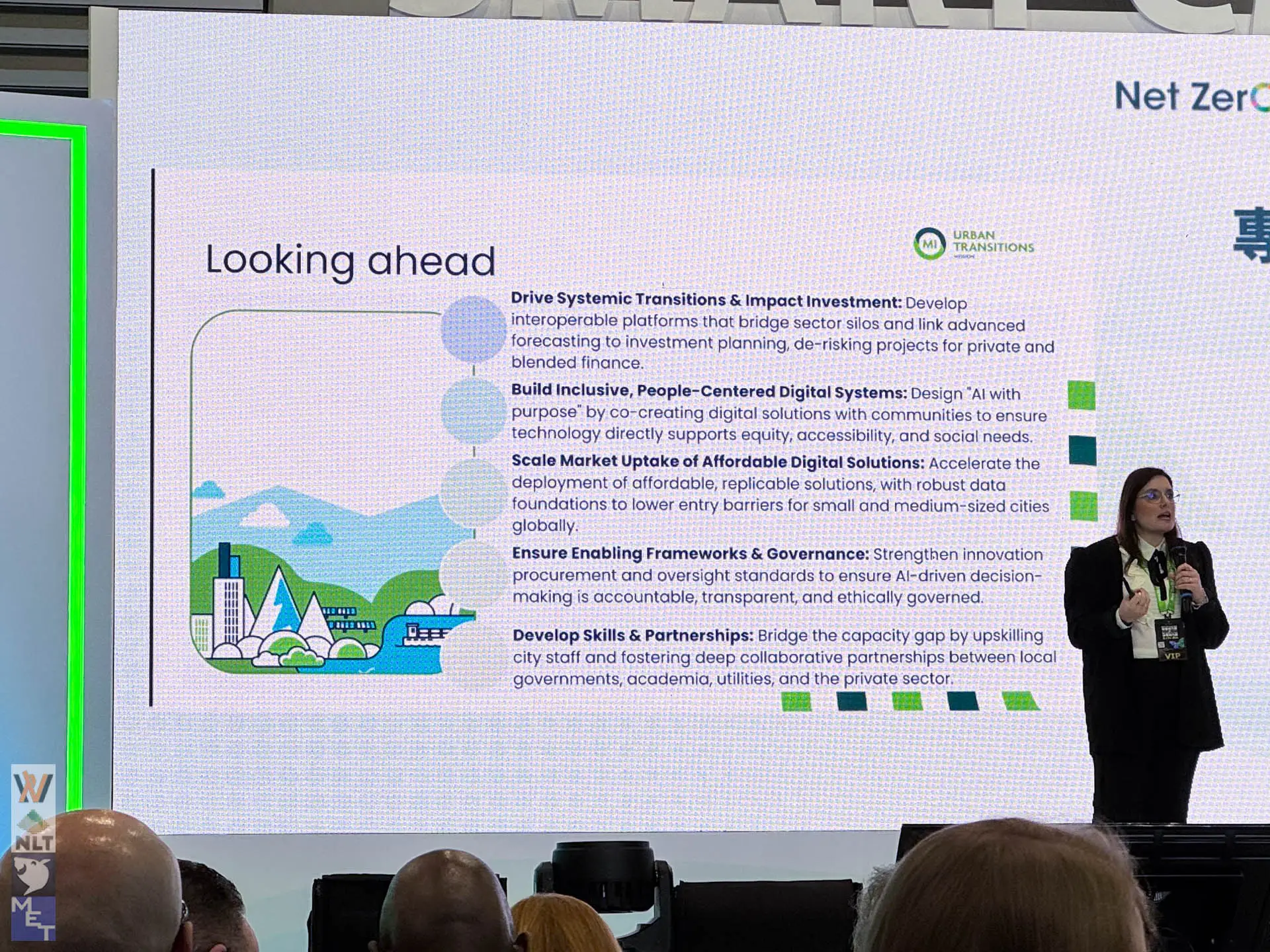 Giorgia Rambelli, Director of the Urban Transitions Mission, shifted the focus toward a systemic “Cities Vision in Action.” Her presentation highlighted that the transition is a multi-dimensional challenge involving more than just hardware.